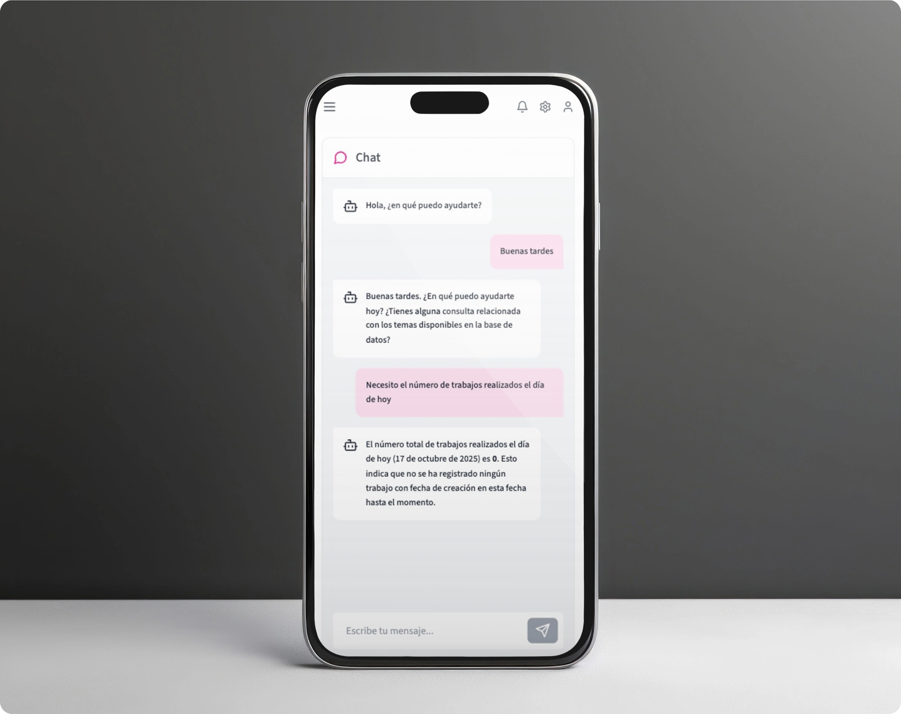 Implementamos modelos de inteligencia artificial generativa optimizados que permiten al chatbot interpretar consultas en lenguaje natural y generar respuestas precisas basadas en los datos empresariales, facilitando el acceso a información compleja sin necesidad de conocimientos técnicos.